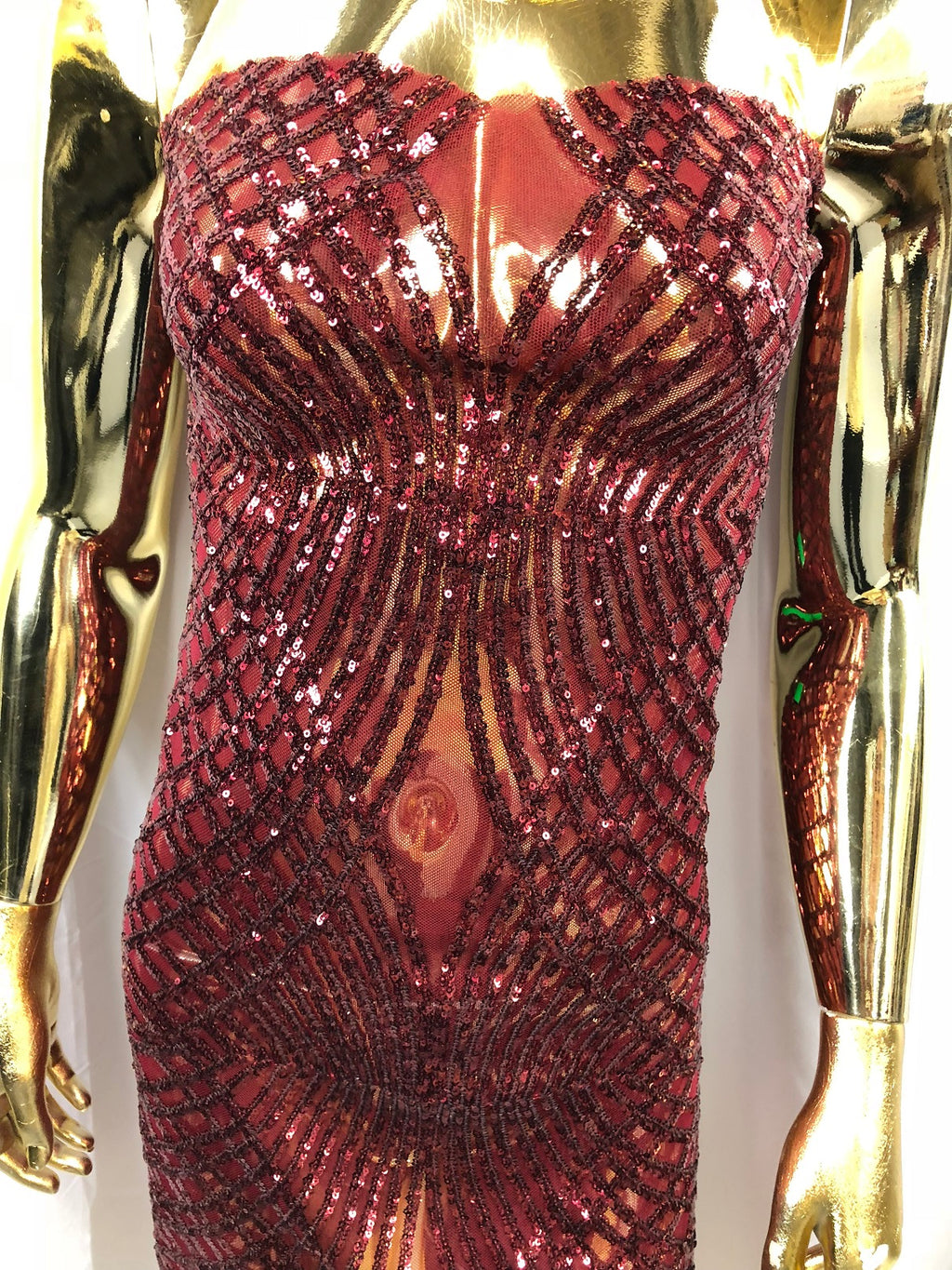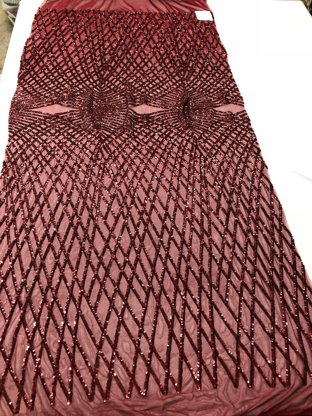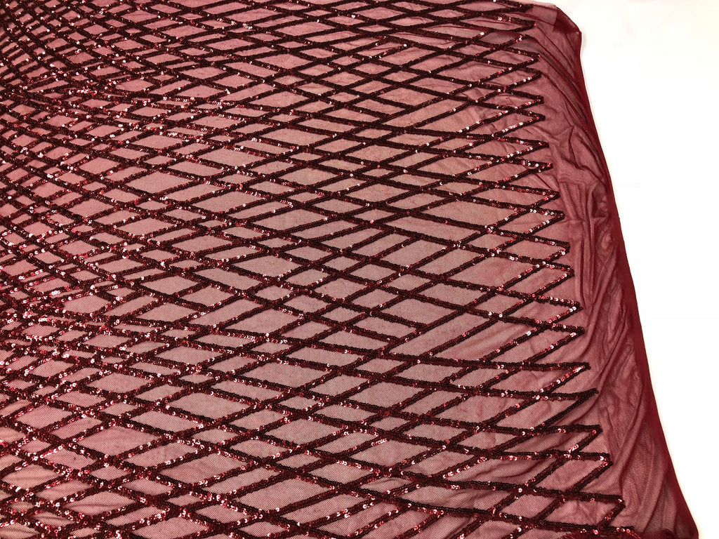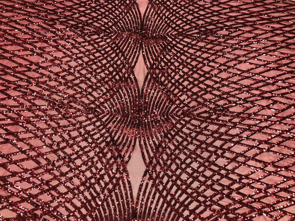4 Way Stretch Sequins Geometric Fabric Burgundy Lace Mesh Dress Fashion Design Fabrics By The Yard