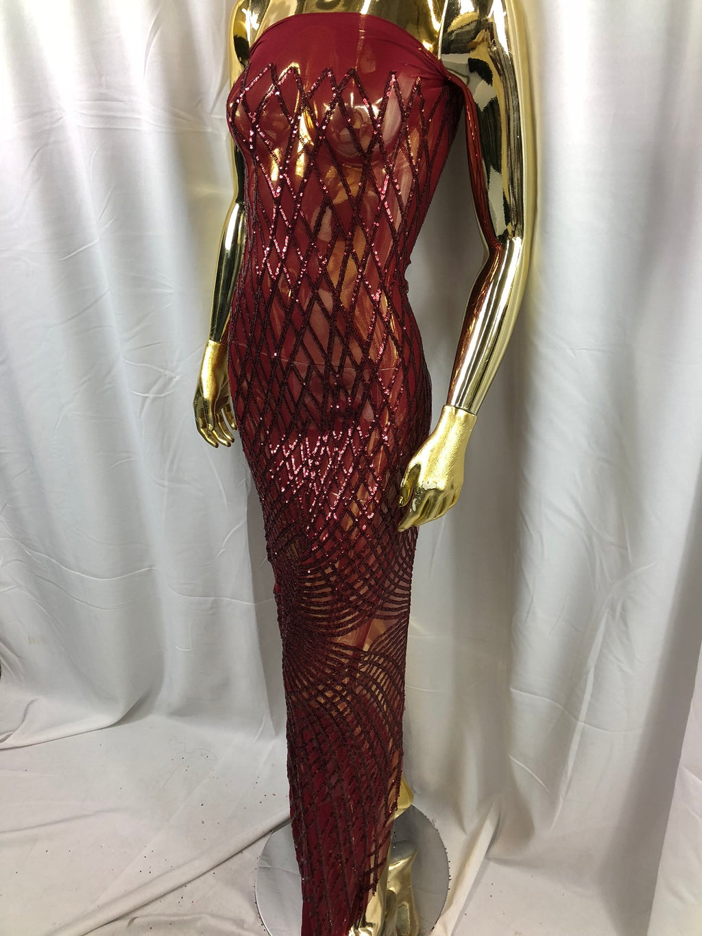 This royalty design is embroidered with Sequins on a 4 Way Stretch Mesh fabric. The sequins has a special and extraordinary geometric design on the mesh . It is super elegant and classy, The royalty design embroided with Sequins on a mesh can be use for dresses, tablecloths, night gowns, Skirts, prom dresses, wedding dresses, runners for tables,decoration and much more.