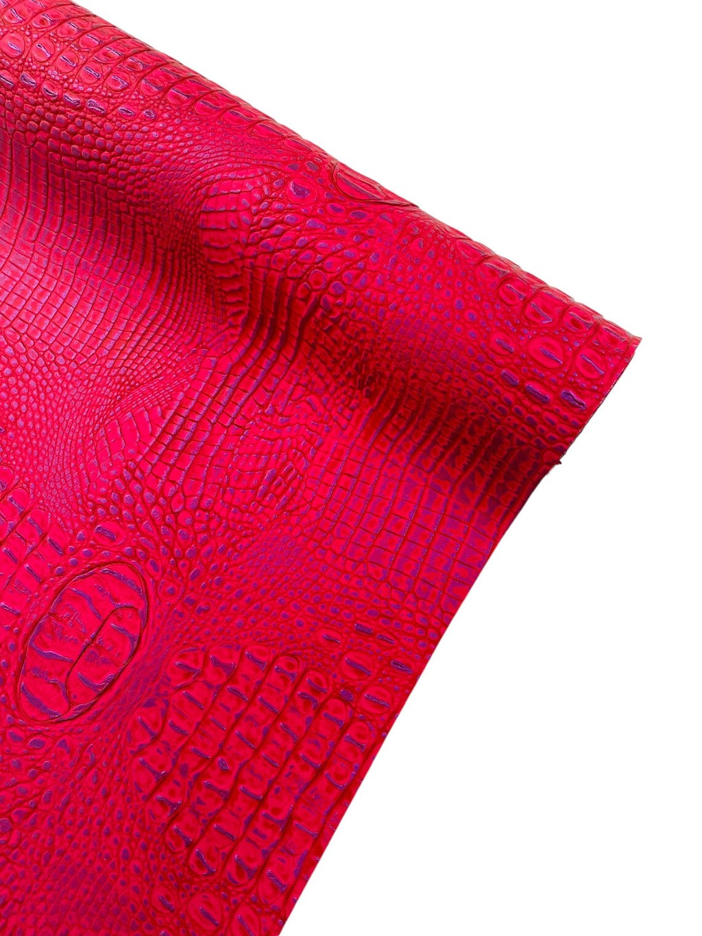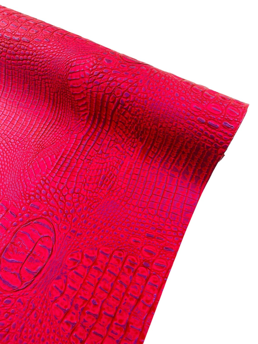 Alligator Faux Leather Vinyl - Hot Pink / Lilac - Fabric 3D Scales Design Vinyl Alligator By Yard