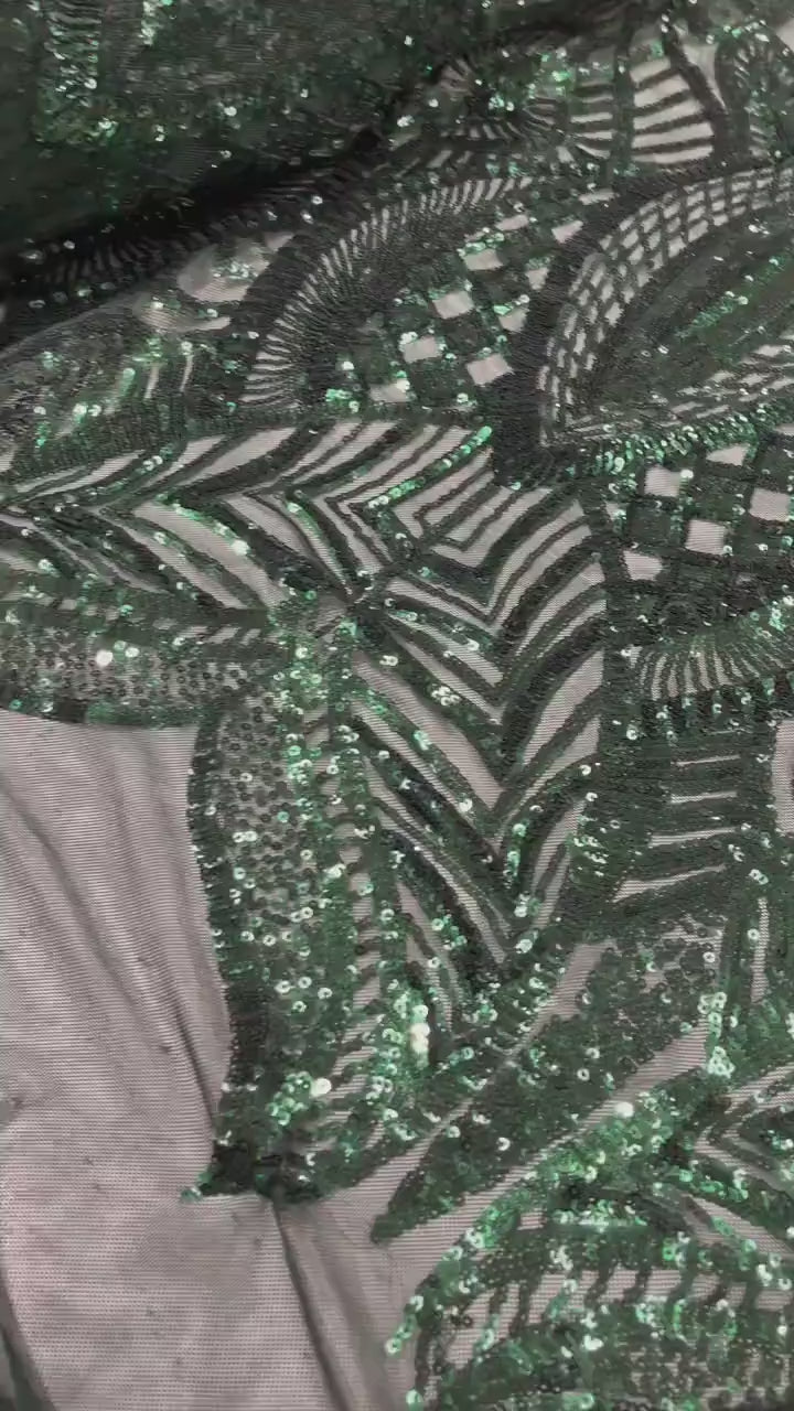 The material has a gorgeous geometric sequin design embroidered on the mesh.