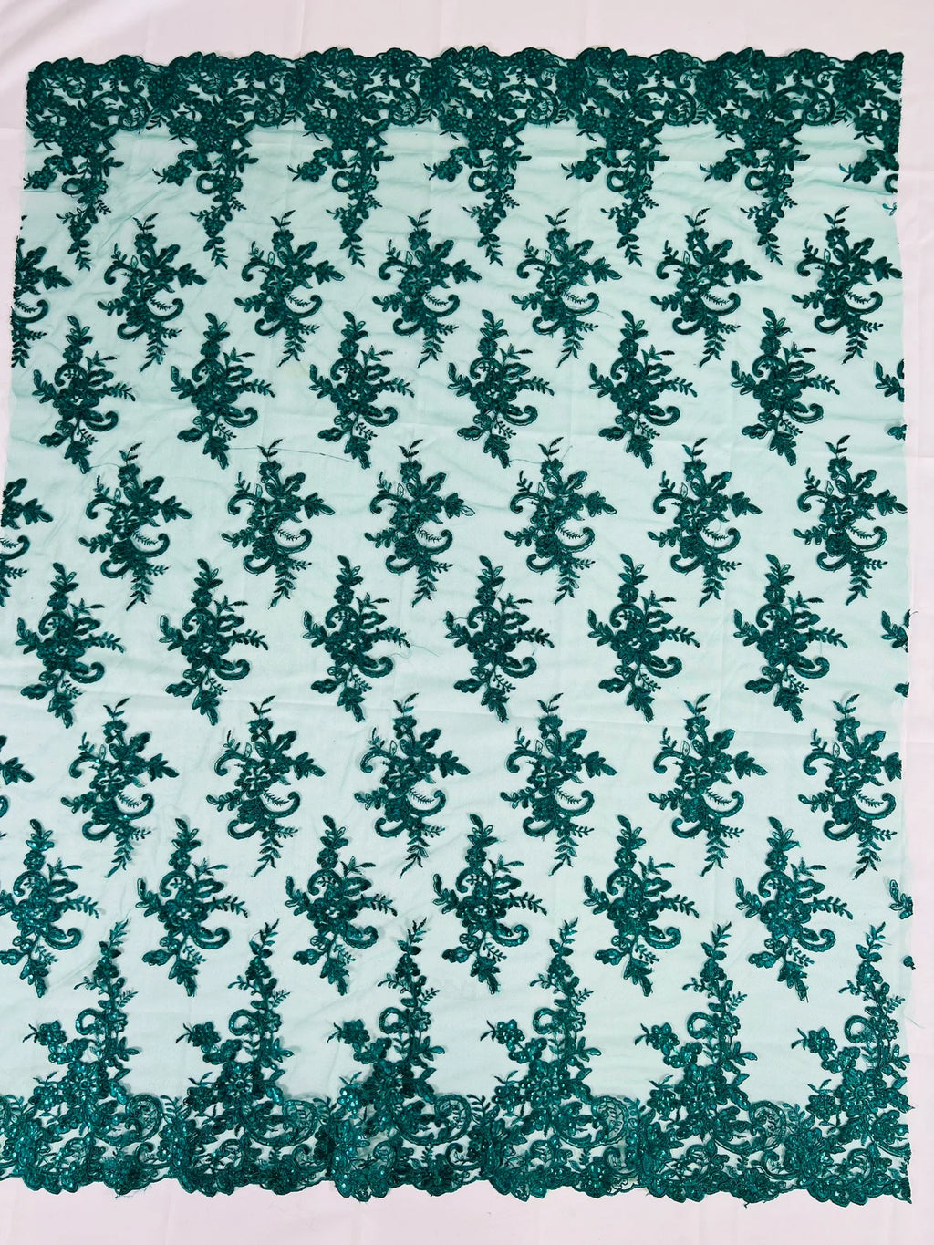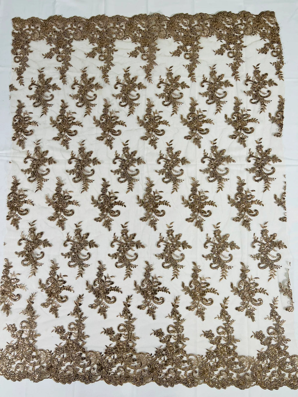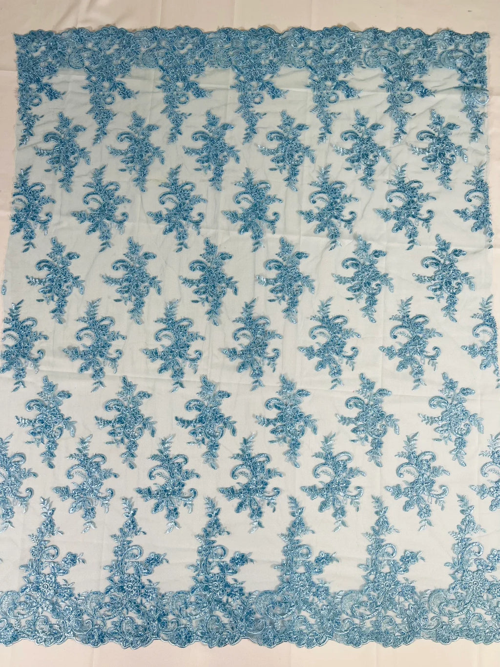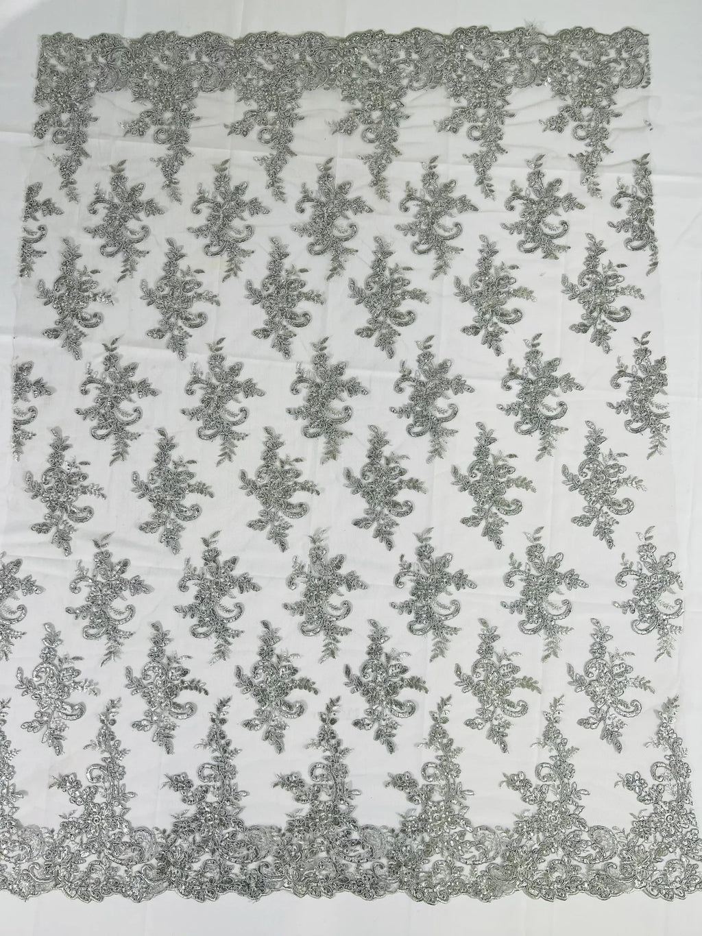 Lace Flower Cluster Fabric - Embroidered Flower With Sequins on a Mesh Lace Fabric - 25 Yard Roll