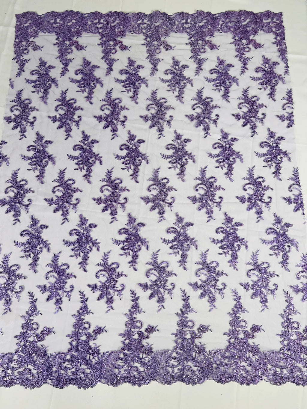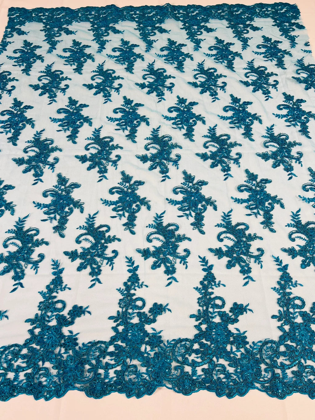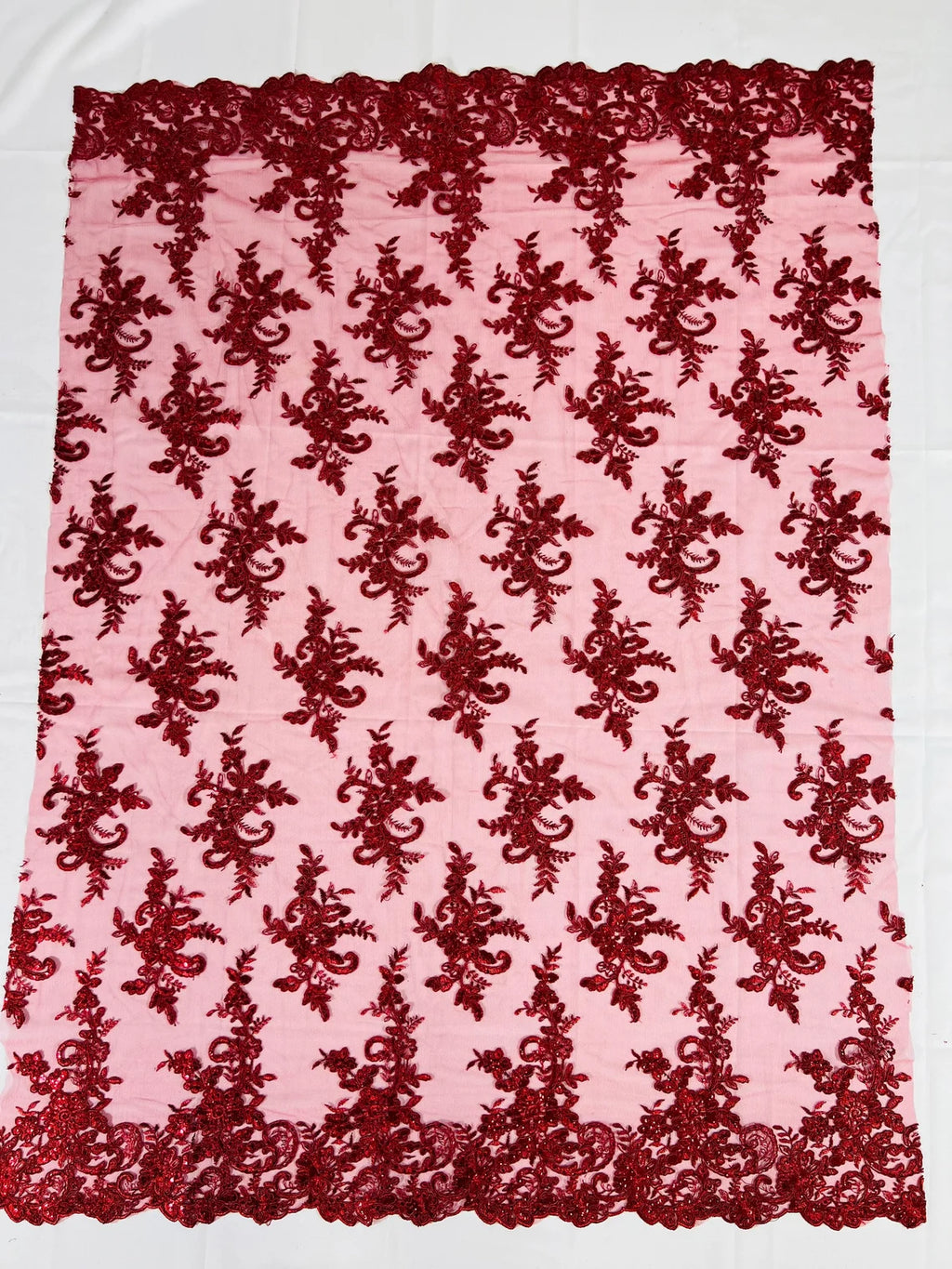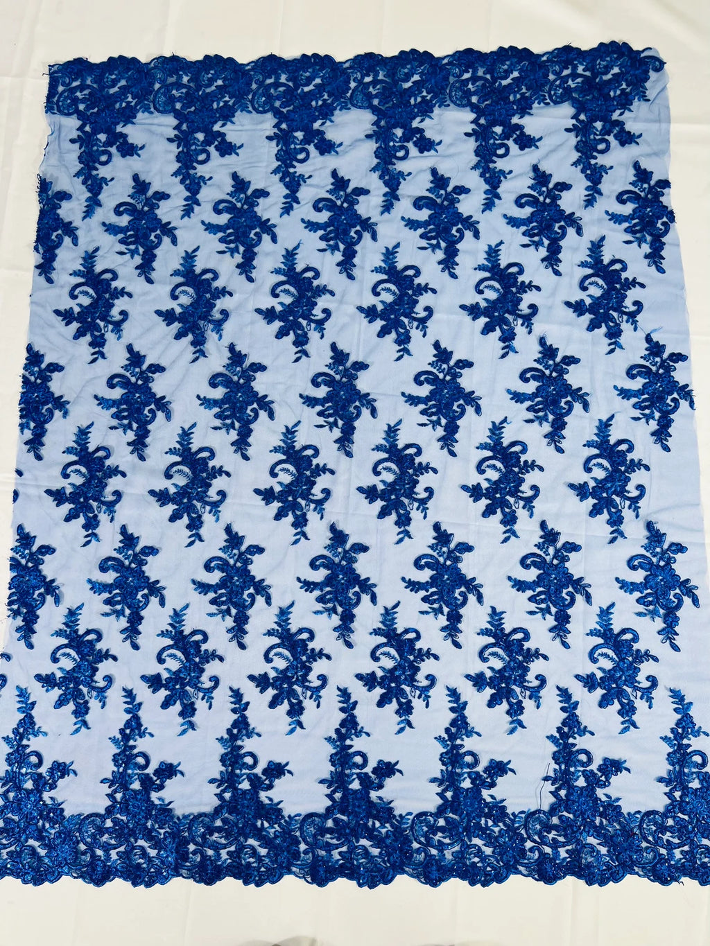 Lace Flower Cluster Fabric - Embroidered Flower With Sequins on a Mesh Lace Fabric - 25 Yard Roll