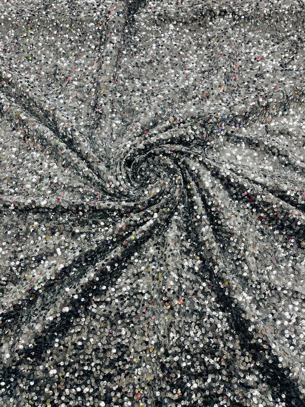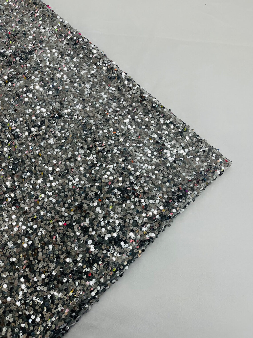Stretch Velvet Sequins Fabric - Silver on Gray - Velvet Sequins 2 Way Stretch 58/60” By Yard